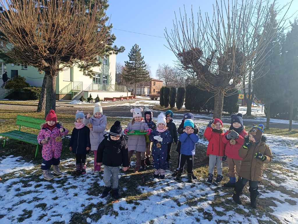 W ten mroźny czas dzieci z grupy Starszaki I zadbały o naszych małych, pierzastych przyjaciół! Przygotowały ptasie przysmaki i rozwiesiły je na podwórku przedszkolnym. Nauczyły się już kiedy, czym i jak karmić ptaki, żeby faktycznie im pomagać. Przydatne w tym temacie informacje można znaleźć na stronie internetowej Lasów Państwowych: