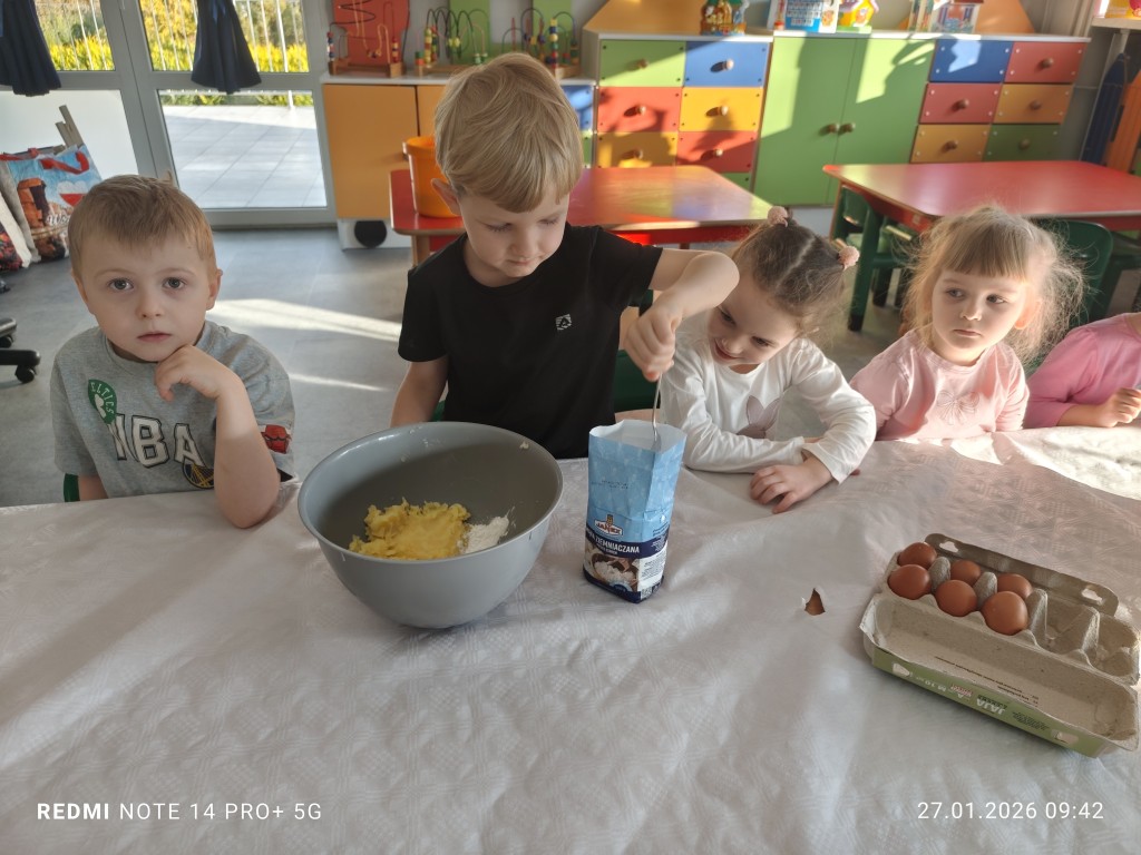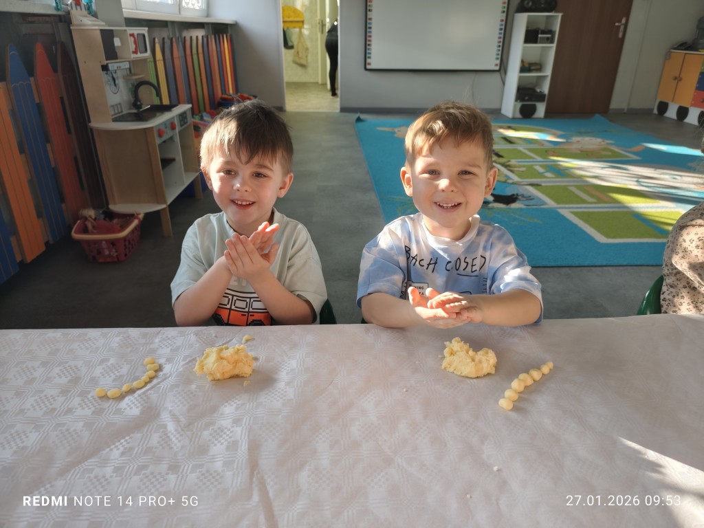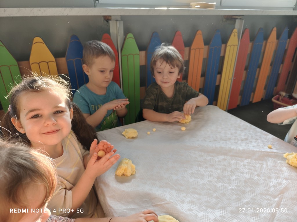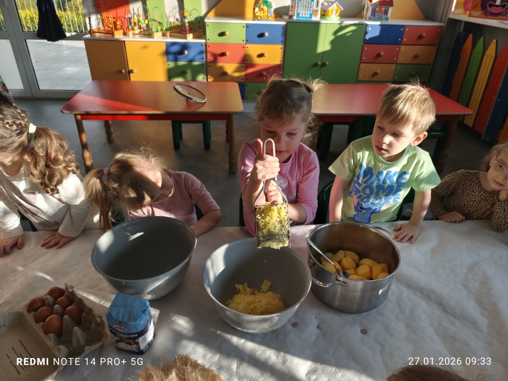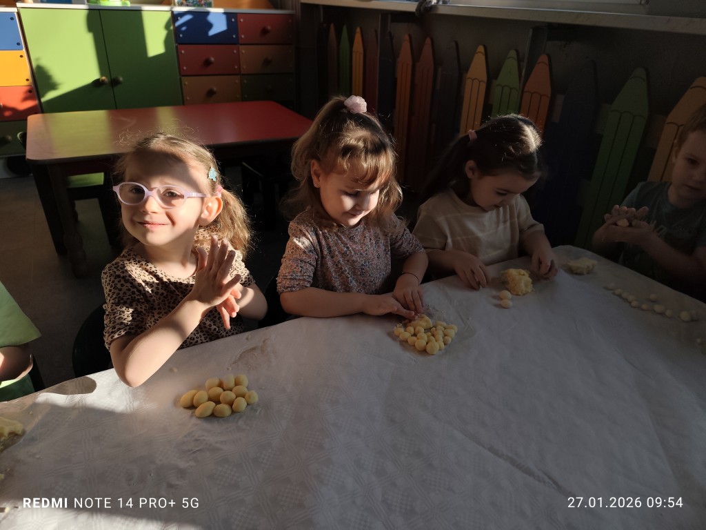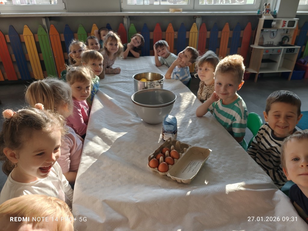 27 stycznia, sala Młodszaków, zamieniła się w kuchnię a dzieci w małych kucharzy. Naszym zadaniem, było wykonanie klusek. Poznaliśmy etapy ich przygotowania a efekty naszej pracy można zobaczyć na zdjęciach.