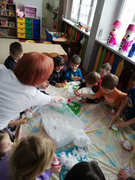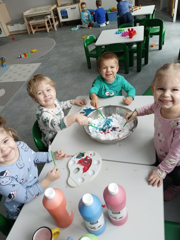 Ferie zimowe w naszym przedszkolu to czas pełen radości, zabawy i niezapomnianych wrażeń! Choć za oknem zimowa aura, u nas nie ma miejsca na nudę. Każdy dzień przynosi przedszkolakom nowe atrakcje, rozwijające zajęcia i mnóstwo uśmiechu. Podczas ferii dzieci biorą udział w różnorodnych zajęciach plastycznych, na których rozwijają swoją twórczość. Nie brakuje także zabaw sensorycznych, które pobudzają wyobraźnię i rozwijają zdolności manualne najmłodszych. Ogromnym zainteresowaniem cieszą się zajęcia ruchowe i sportowe. Przedszkolaki uczestniczą w torach przeszkód oraz wspólnych zabawach tanecznych. Jest to doskonała okazja do aktywnego spędzania czasu, wzmacniania kondycji fizycznej oraz nauki zdrowej rywalizacji i współpracy.