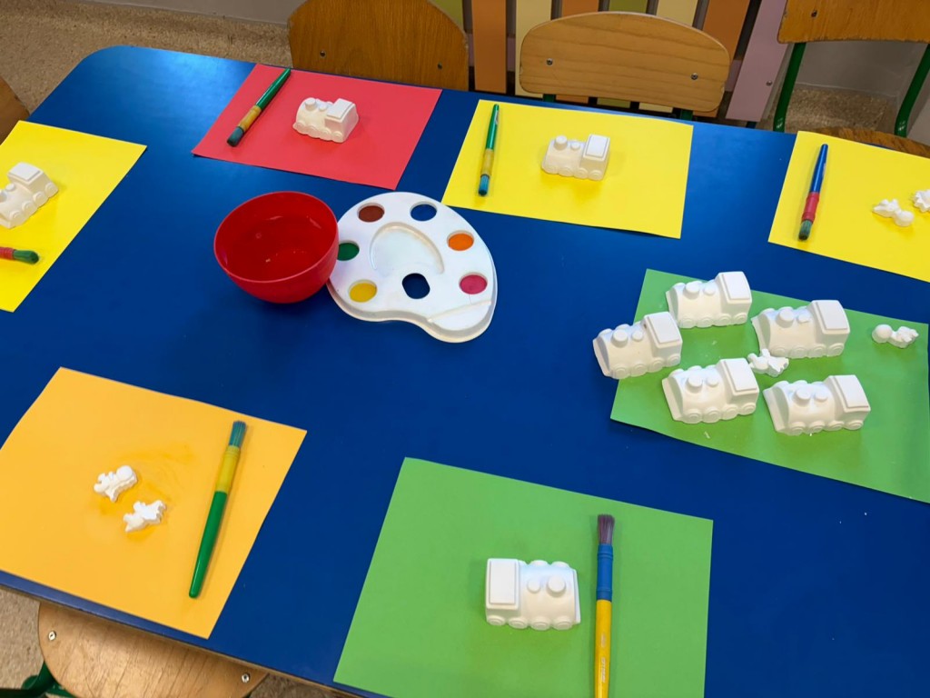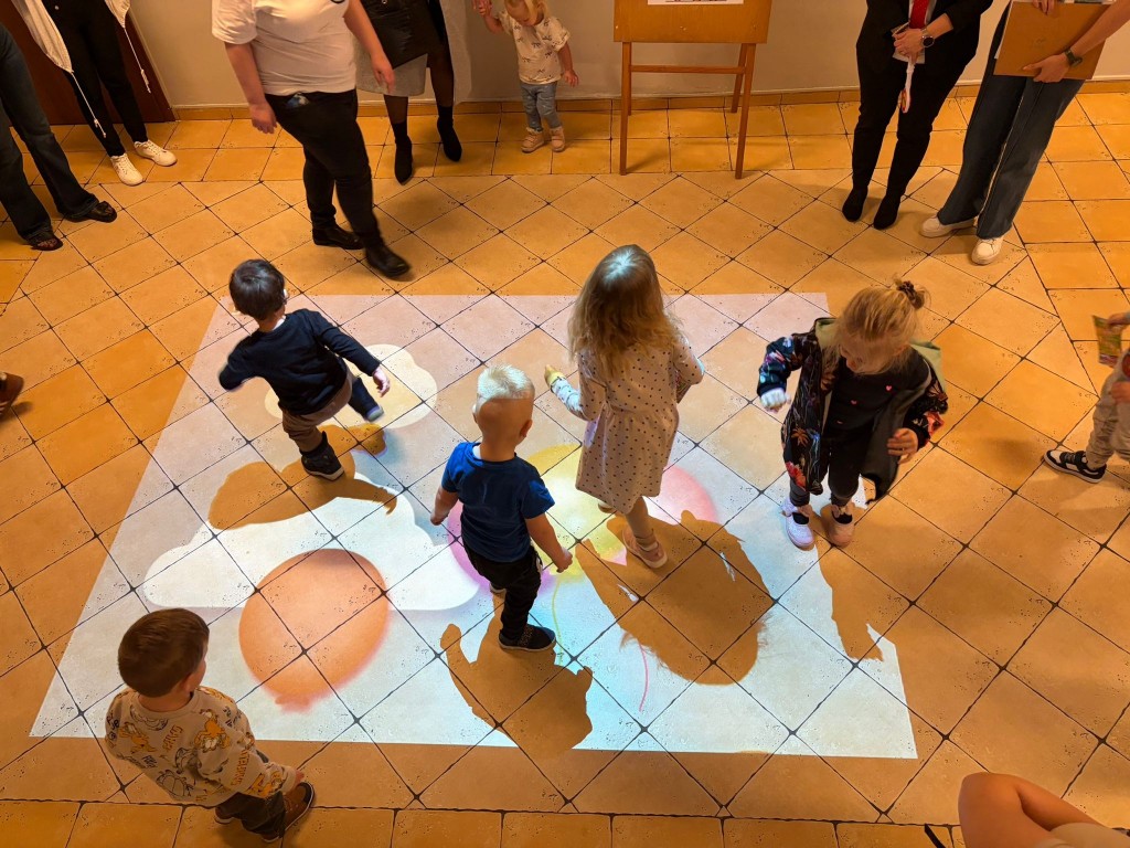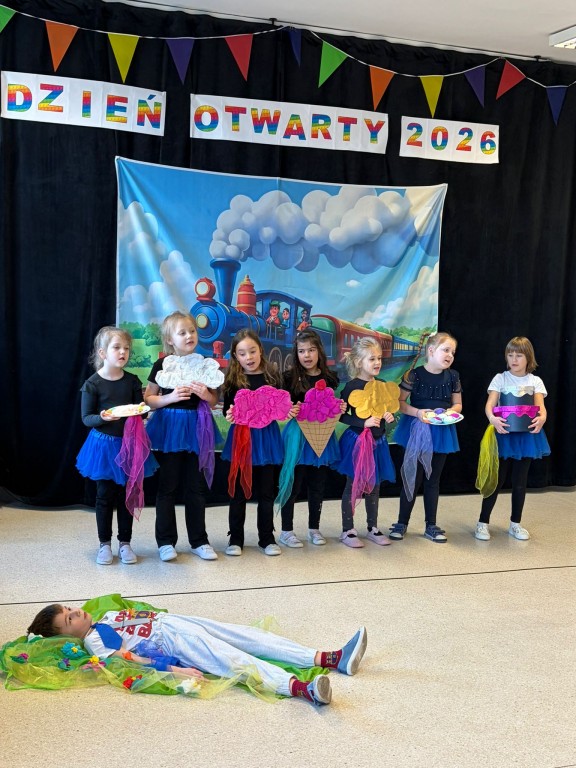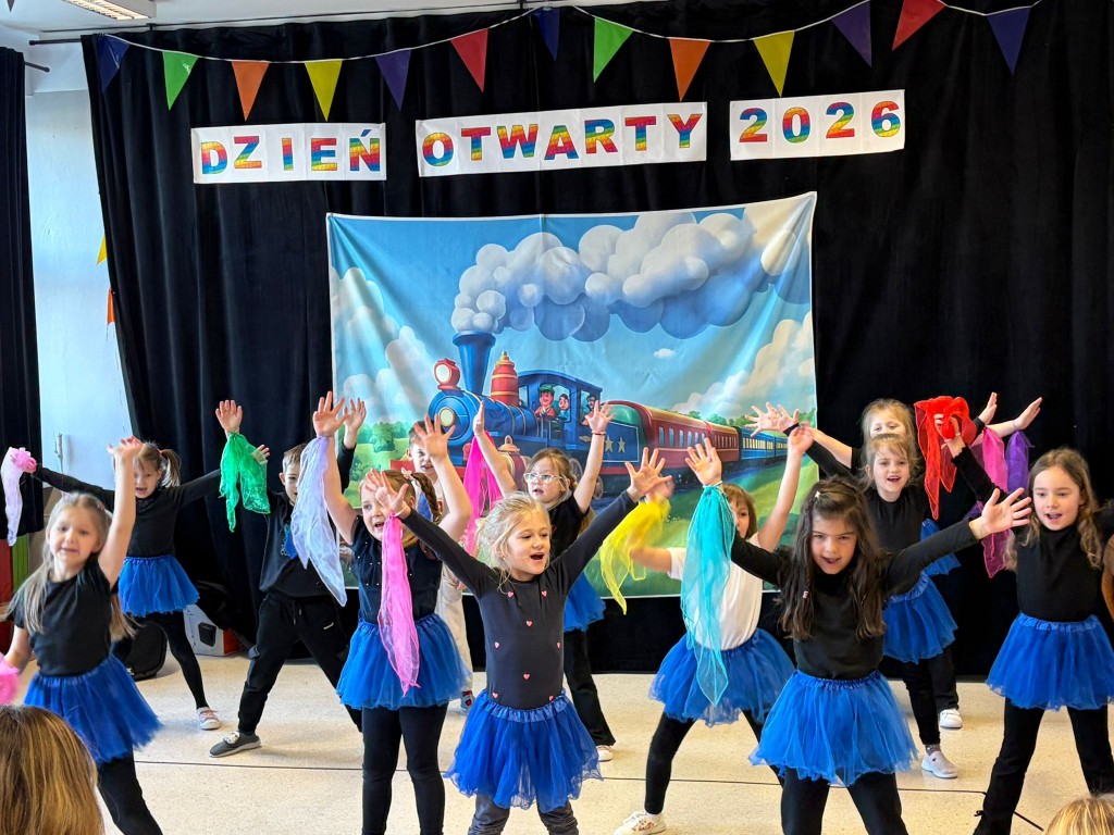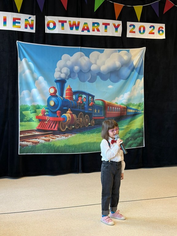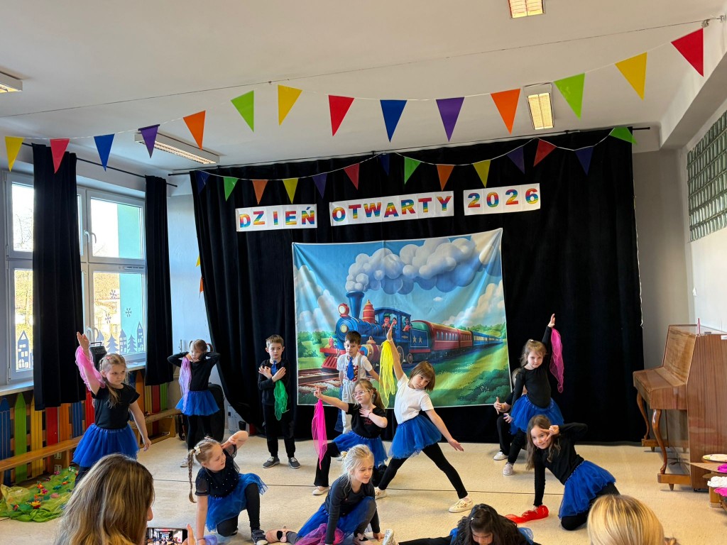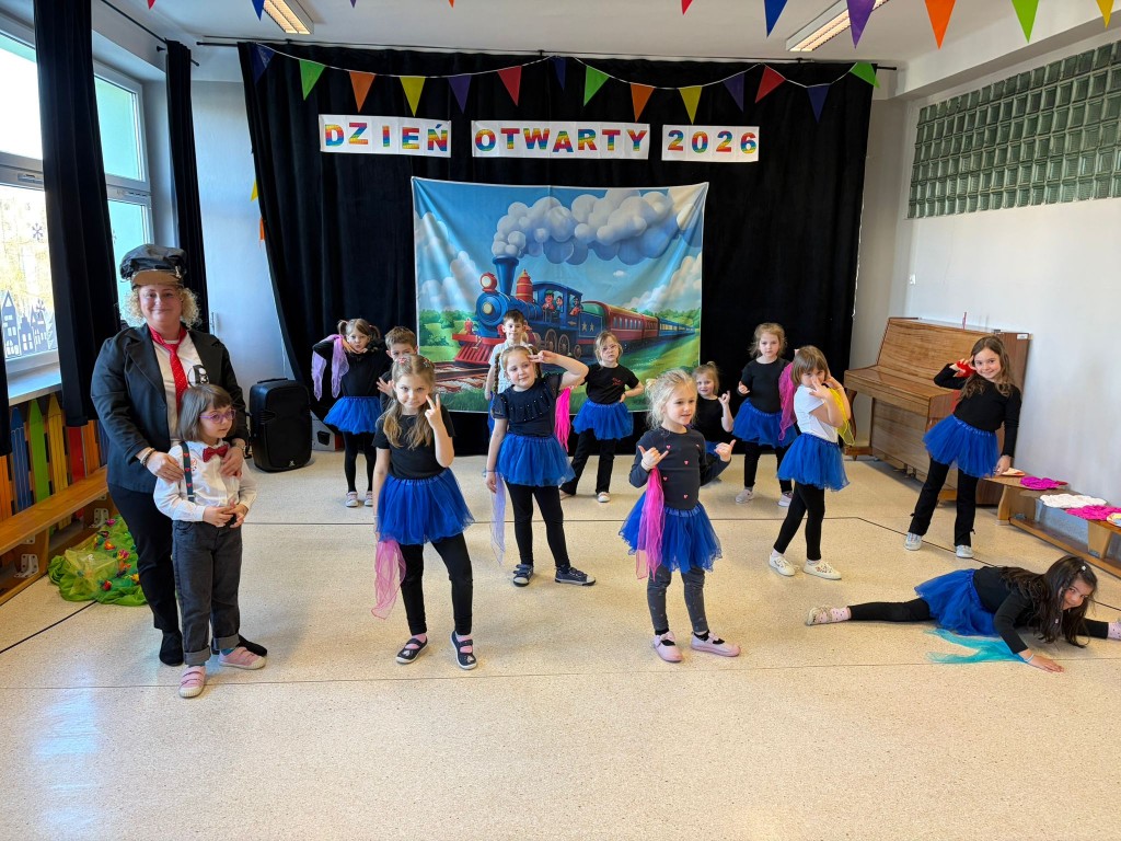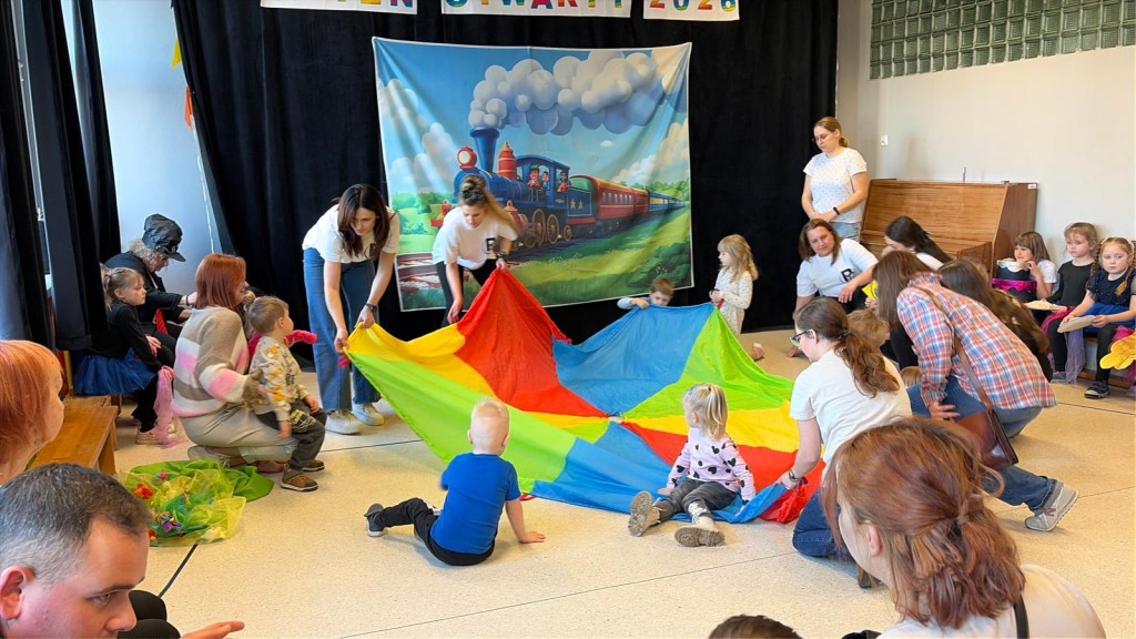 Na dzieci i ich rodziców czekało wiele atrakcji. Jedną z nich była wizyta niezwykłego gościa – konduktora, który zaprosił dzieci do wspólnej, muzycznej podróży pełnej zabawy i uśmiechu. Dzieci zobaczyły występ artystyczny naszych przedszkolaków. Chętnie uczestniczyły w aktywnościach, angażując się w proponowane animacje z kodowania i malowania gipsu. Dużym zainteresowaniem cieszył się dywan interaktywny oraz sala integracji sensorycznej. Nie zabrakło poczęstunku, który umilił najmłodszym niezapomniane chwile.