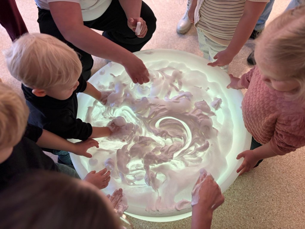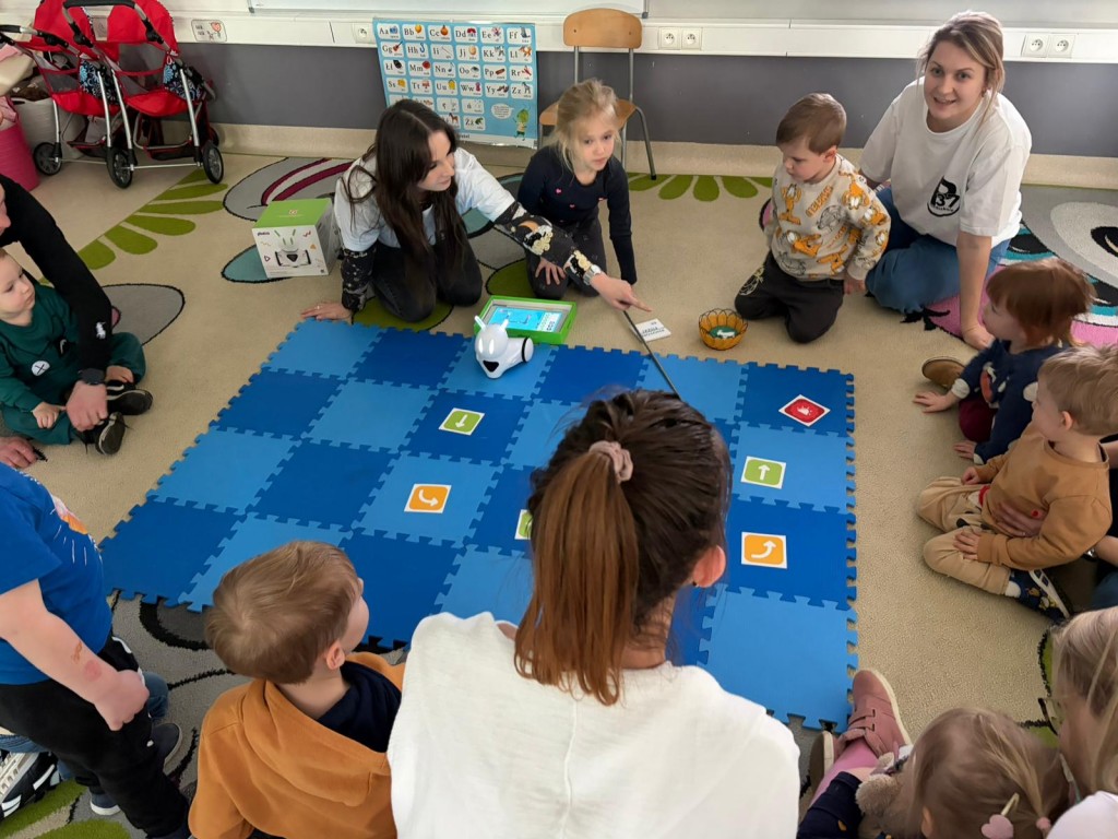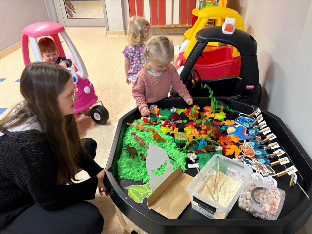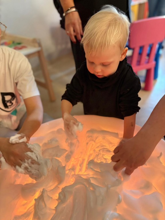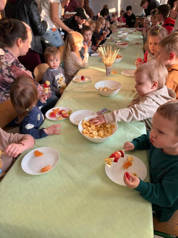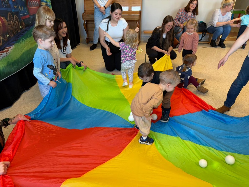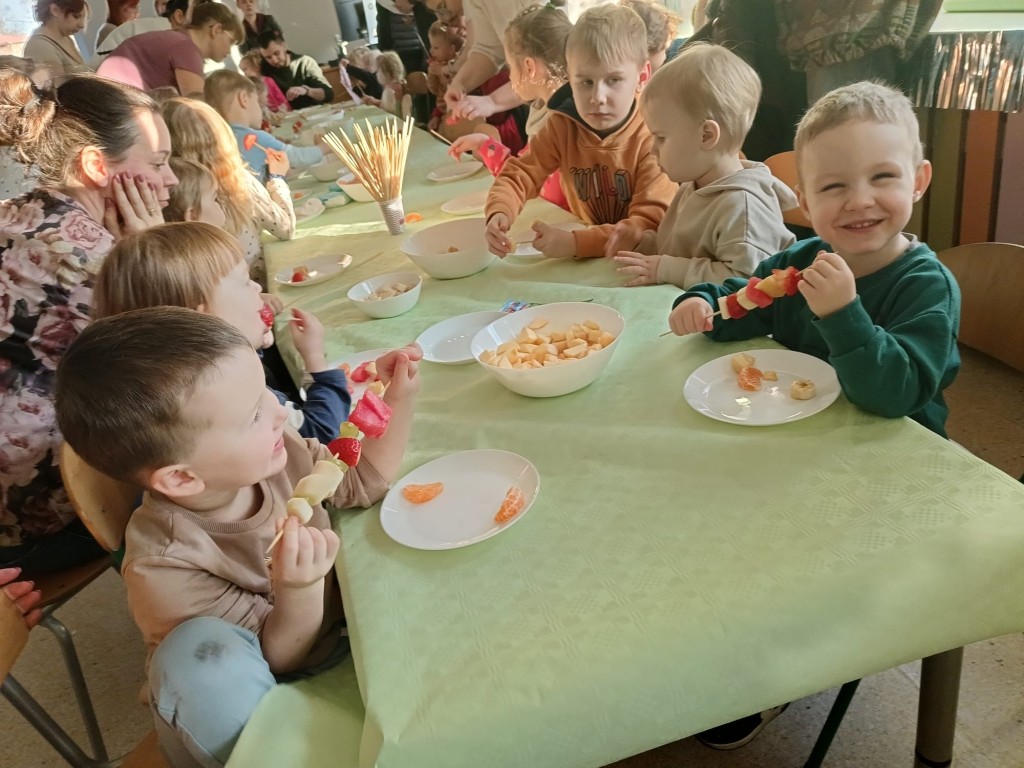 Na dzieci i ich rodziców czekało wiele atrakcji. Jedną z nich była wizyta niezwykłego gościa – konduktora, który zaprosił dzieci do wspólnej, muzycznej podróży pełnej zabawy i uśmiechu. Dzieci zobaczyły występ artystyczny naszych przedszkolaków. Chętnie uczestniczyły w aktywnościach, angażując się w proponowane animacje z kodowania i malowania gipsu. Dużym zainteresowaniem cieszył się dywan interaktywny oraz sala integracji sensorycznej. Nie zabrakło poczęstunku, który umilił najmłodszym niezapomniane chwile.