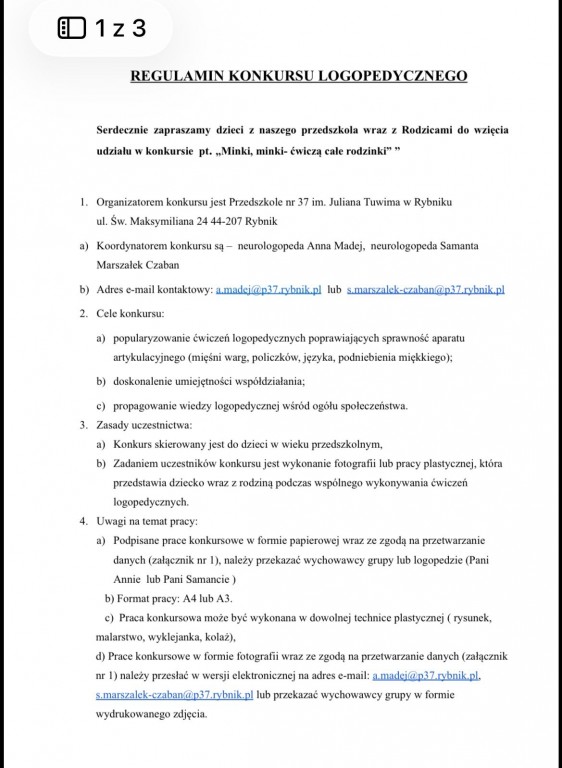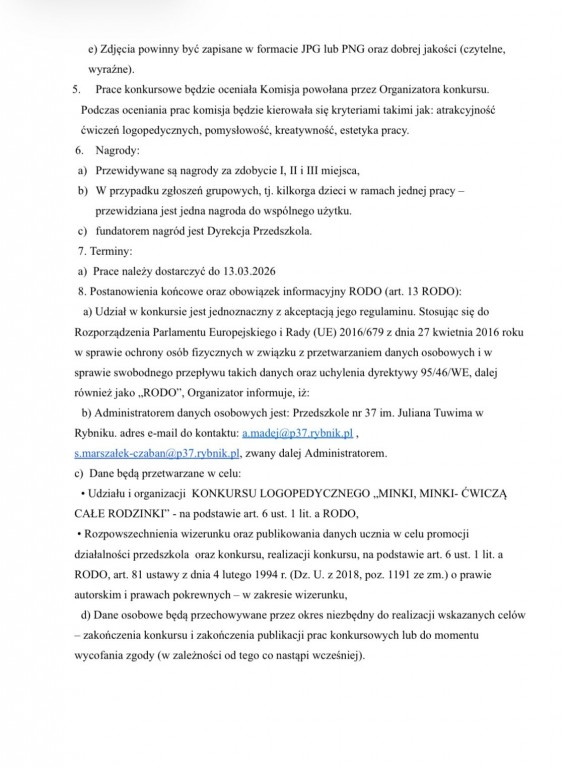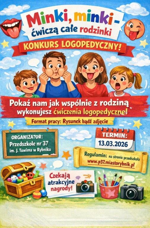 Serdecznie zapraszamy dzieci z naszego przedszkola wraz z Rodzicami do wzięcia udziału w konkursie pt. " Minki, minki-ćwiczą całe rodzinki". Zachęcamy do zapoznania się z regulaminem konkursu oraz szczegółami na plakacie.