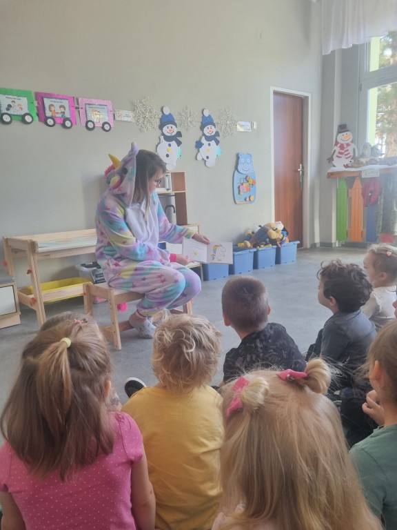 Dzisiaj w naszej grupie trzylatków gościliśmy mamę Maćka - panią Magdalenę. Przeczytała nam bajkę o Guciu i złości. Wspólne czytanie było okazją do rozmowy o uczuciach oraz o tym, jak można radzić sobie z trudnymi emocjami. Dziękujemy za miłe spotkanie!