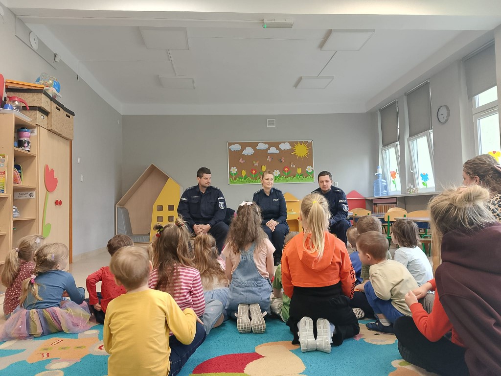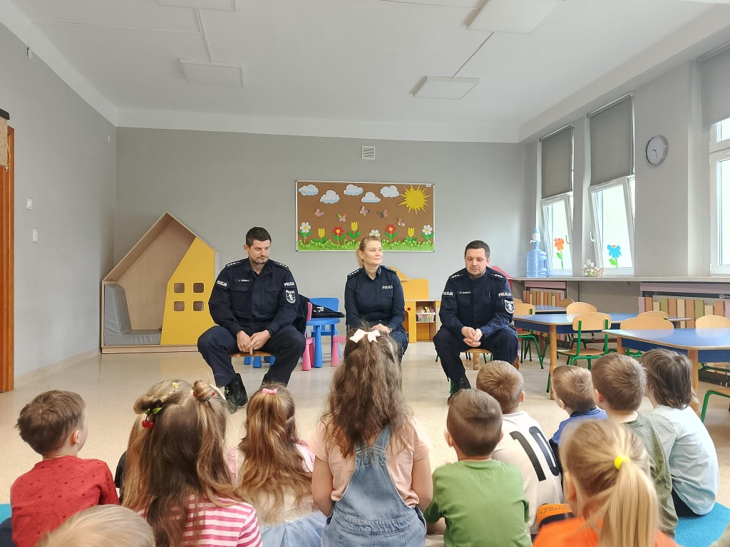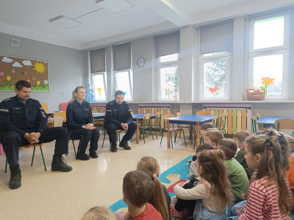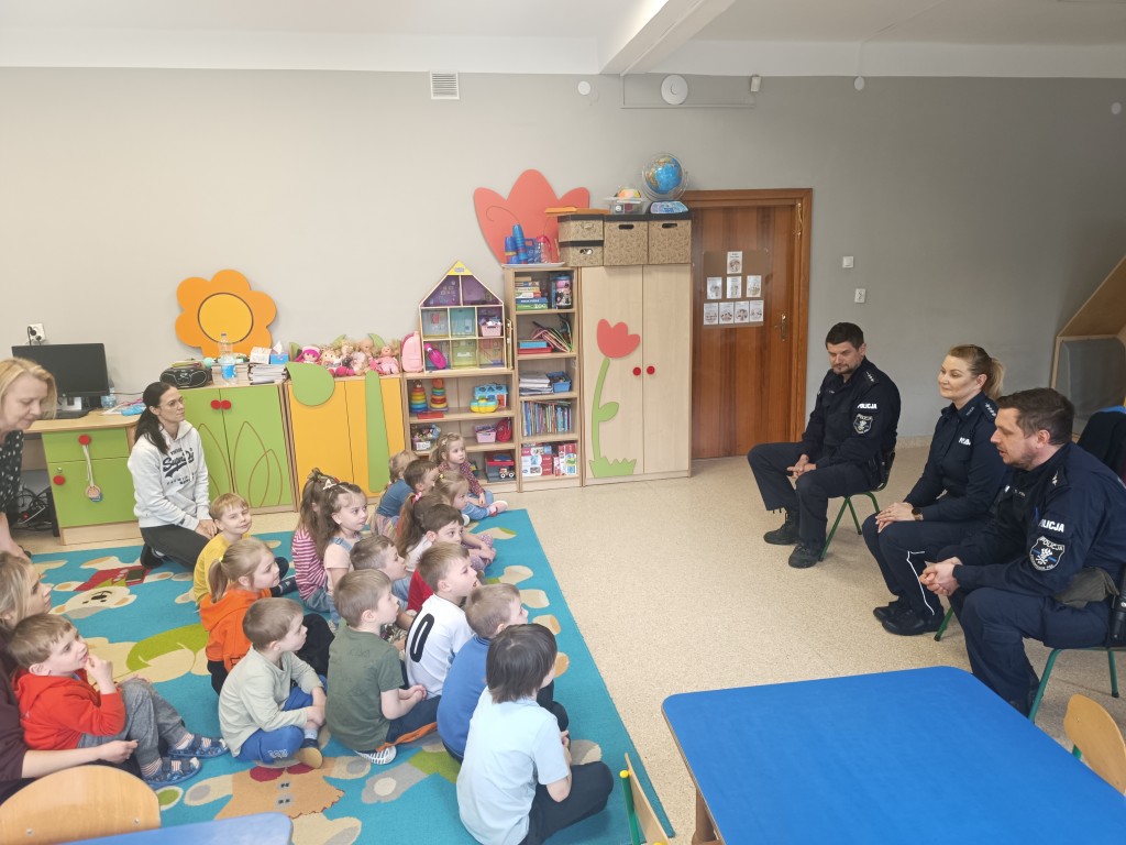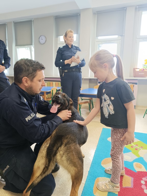 17 marca w grupie Starszaki I odbyło się wyjątkowe spotkanie z policjantami z Komendy Miejskiej w Rybniku. Dzieci poznały wiele ciekawostek na temat pracy policjanta, przypomniały sobie zasady bezpiecznego przechodzenia przez jezdnię oraz zasady bezpieczeństwa w kontakcie z nieznajomymi. Ale to nie wszystko! Na dzieci czekała jeszcze jedna niespodzianka - wizyta psa policyjnego o imieniu Leo! Dzieci dowiedziały się, jak wygląda trening i praca psa na służbie oraz poznały pozycję bezpieczną na wypadek spotkania z nieprzyjaznym lub groźnym zwierzęciem. Leo zaprezentował swoje ulubione sztuczki, otrzymując za swoje zaangażowanie jego ulubione przysmaki! Na koniec dzieci pogłaskały pieska i wręczyły gościom podziękowania. To była wspaniała przygoda!