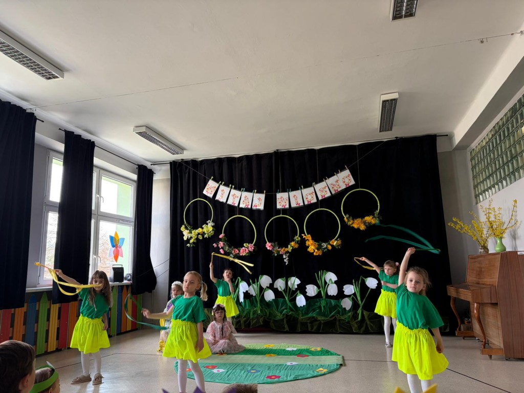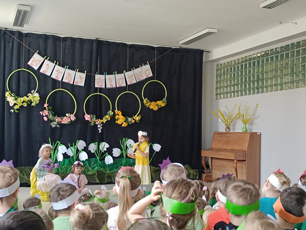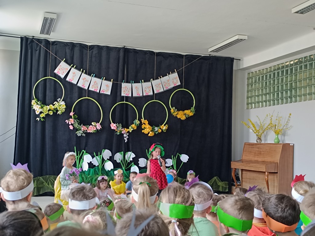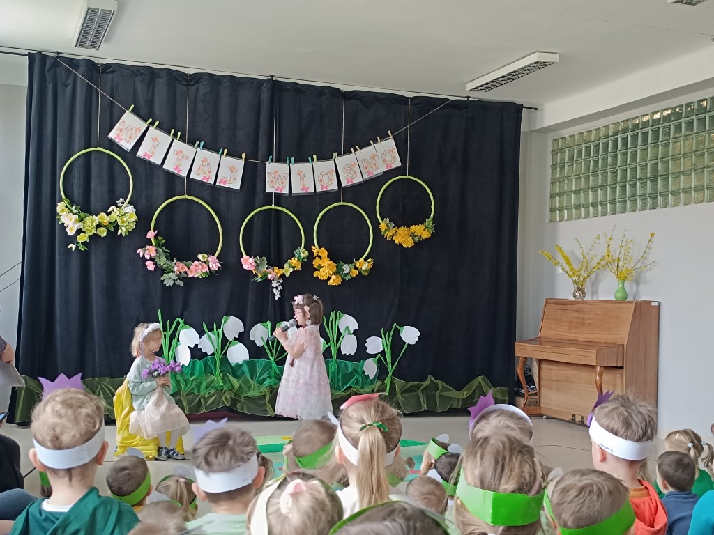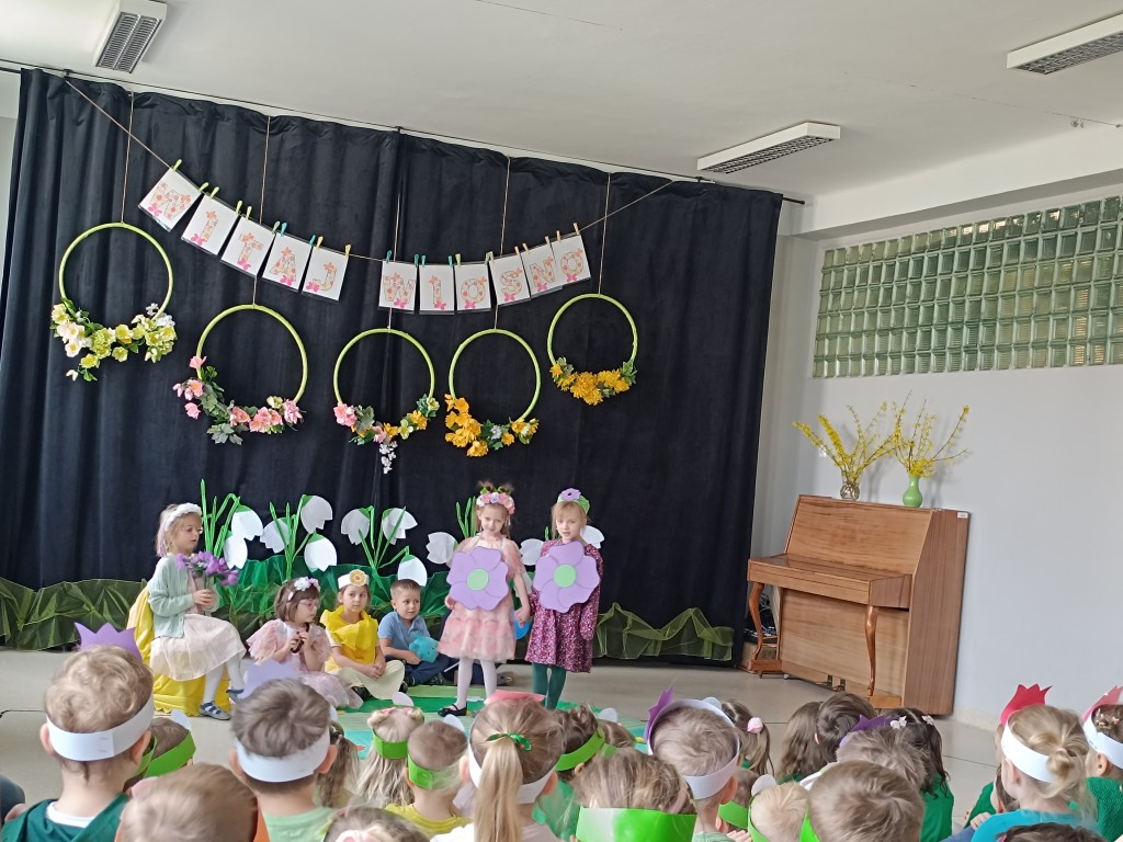 "Marzanno, Marzanno, odejdź już, prosimy. Nie chcemy już żadnych śladów zimy. Niech odejdą z Tobą mrozy oraz chłody. O powrocie zimy nie może być mowy" - tymi słowami dzieci pożegnały dziś zimę, a tańcem i piosenką powitały wiosnę. Nadchodząca pora roku przyszła z "pomocnikami" z grupy Starszaki II. Na wiosennej łące można było spotkać kwiaty, żabę, biedronkę, pszczołę, bociana, motyle, ptaki, wiatr i kroplę wody. Dzisiaj w naszym przedszkolu było wesoło i kolorowo. Cieszymy się, że jest już z nami nowa pora roku. Witaj, wiosno!