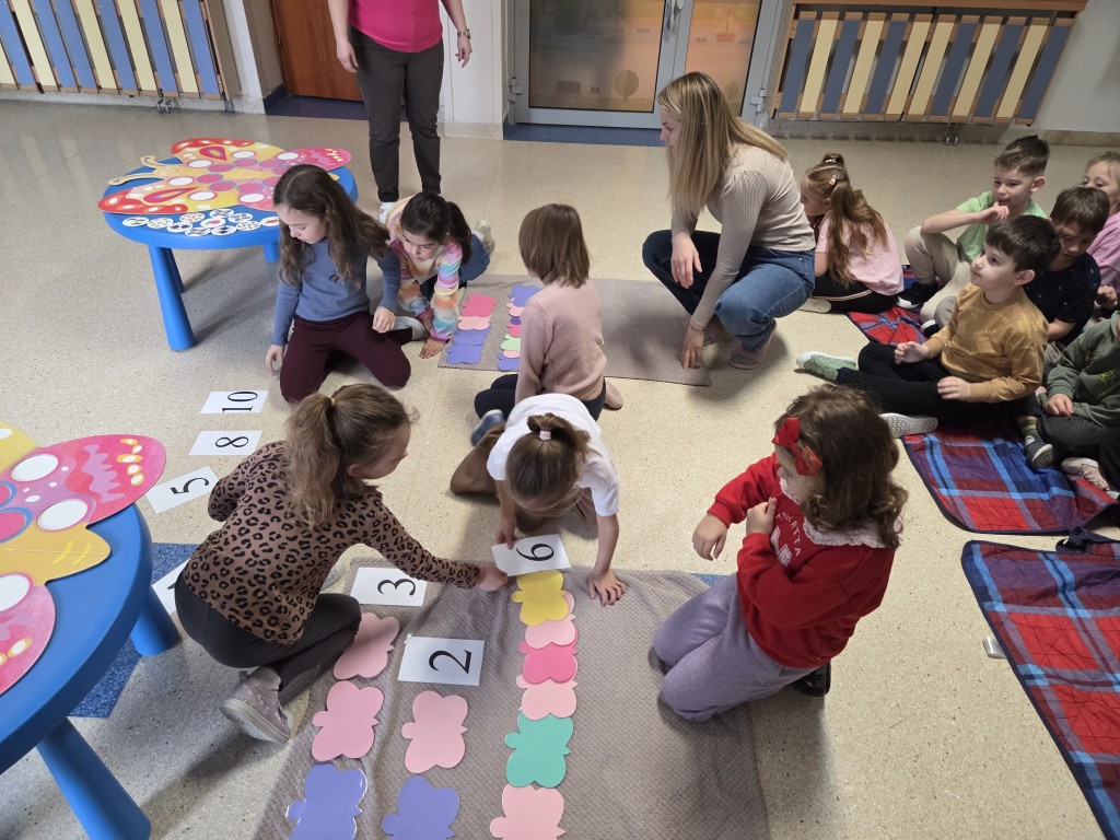 30 marca 2026 r. w naszym przedszkolu odbyła się wyjątkowa Wiosenna Olimpiada Matematyczna, w której udział wzięły dzieci z grup Zerówka I oraz Zerówka III. Celem olimpiady było rozwijanie myślenia matematycznego i logicznego poprzez zabawę, ruch oraz współpracę w grupie. Dzieci miały okazję utrwalić umiejętności liczenia, dodawania, odejmowania, a także porównywania liczebności zbiorów - wszystko w radosnej, wiosennej atmosferze. Olimpiada była nie tylko okazją do nauki, ale także do rozwijania wyobraźni, spostrzegawczości oraz umiejętności pracy w grupie. Dzieci z zaangażowaniem wykonywały zadania, dzieliły się materiałami i wspólnie podejmowały decyzje. Na zakończenie każde dziecko otrzymało pamiątkowy medal za aktywny udział w olimpiadzie. To był dzień pełen radości, nauki i wiosennej energii!