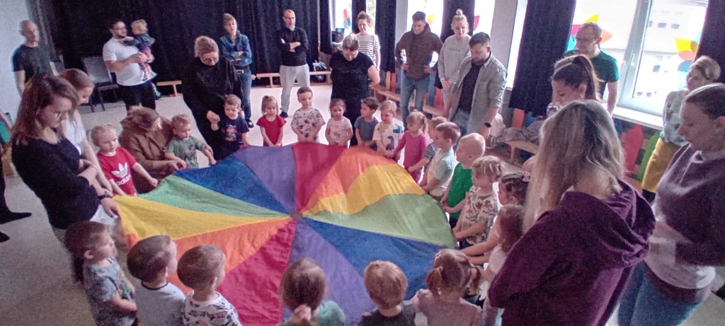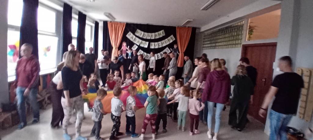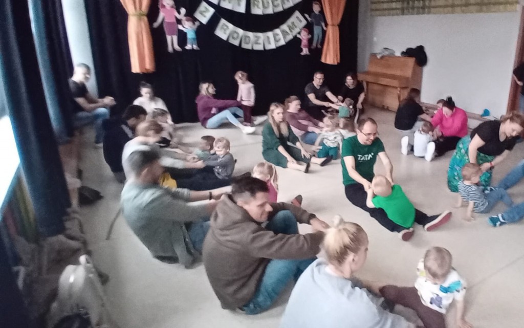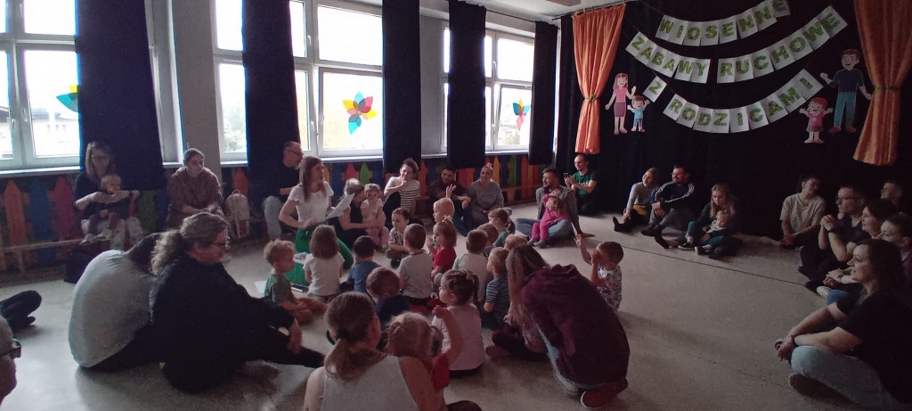 Dzieci wraz z Rodzicami uczestniczyły w różnorodnych zabawach ruchowych inspirowanych wiosną. Nie zabrakło ćwiczeń, tańców oraz zabaw integracyjnych, które dostarczyły wszystkim wielu pozytywnych emocji. Wspólne działania sprzyjały budowaniu relacji, rozwijaniu sprawności fizycznej oraz wzmacnianiu więzi między dziećmi a Rodzicami.