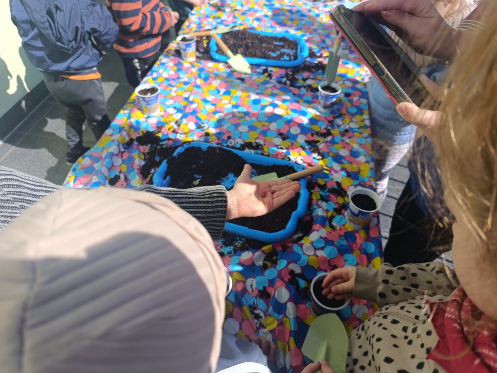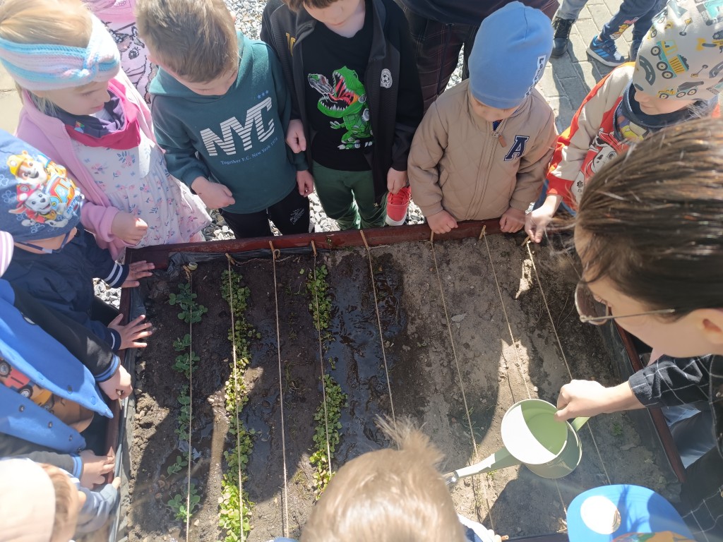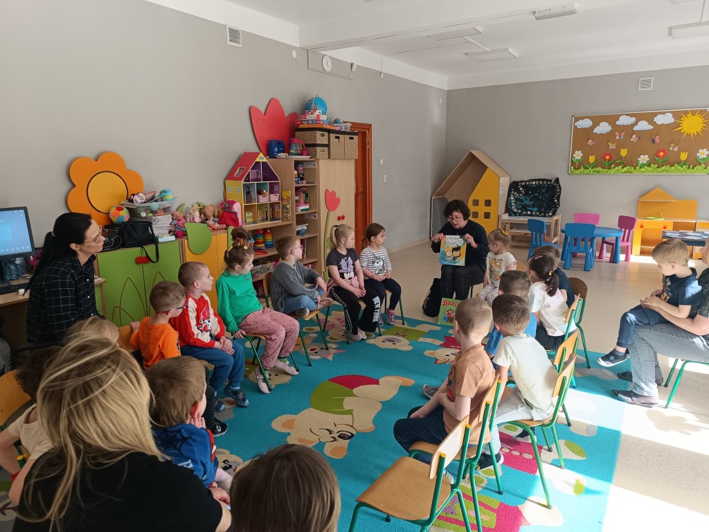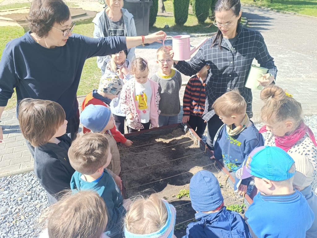 Dzieci wysłuchały ciekawego opowiadania o recyklingu, porozmawiały o tym, jak możemy dbać o planetę, a na końcu - wysiały nasionka różnych roślin, wykorzystując do tego opakowania po jogurtach w duchu zero waste. Przygotowały także sadzonki, które już niebawem staną się kolorową ozdobą biblioteki. Na koniec dzieci zaprosiły Panią Beatę do przedszkolnego ogródka, by pochwalić się rosnącymi roślinami.
