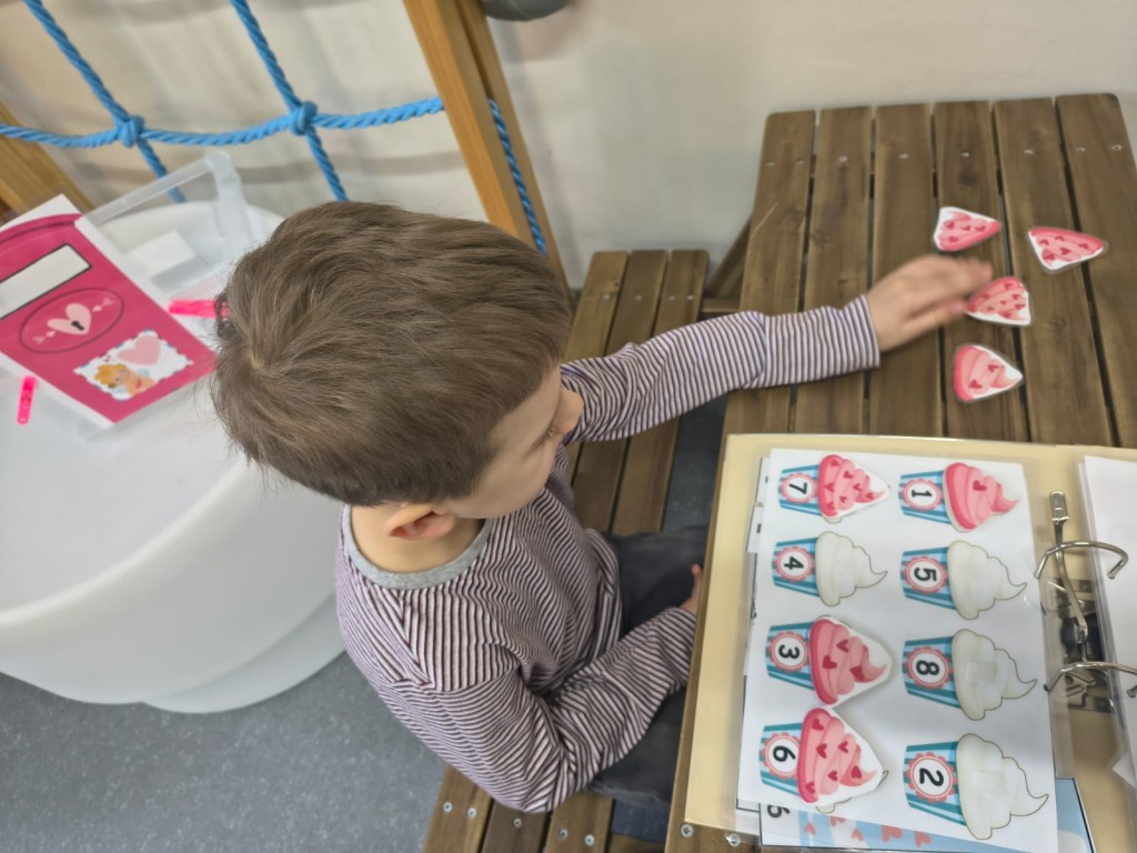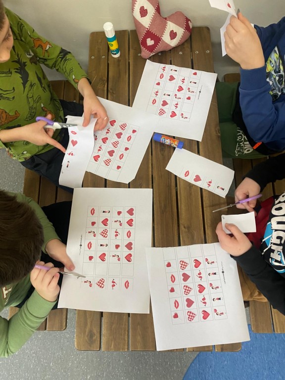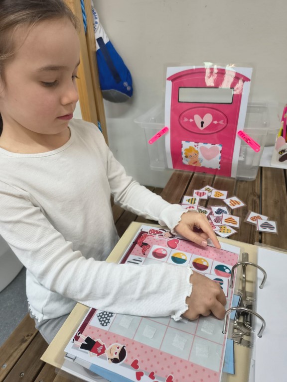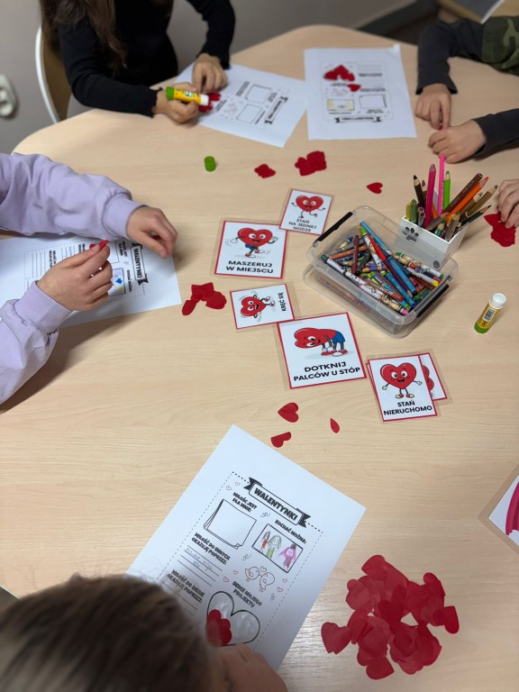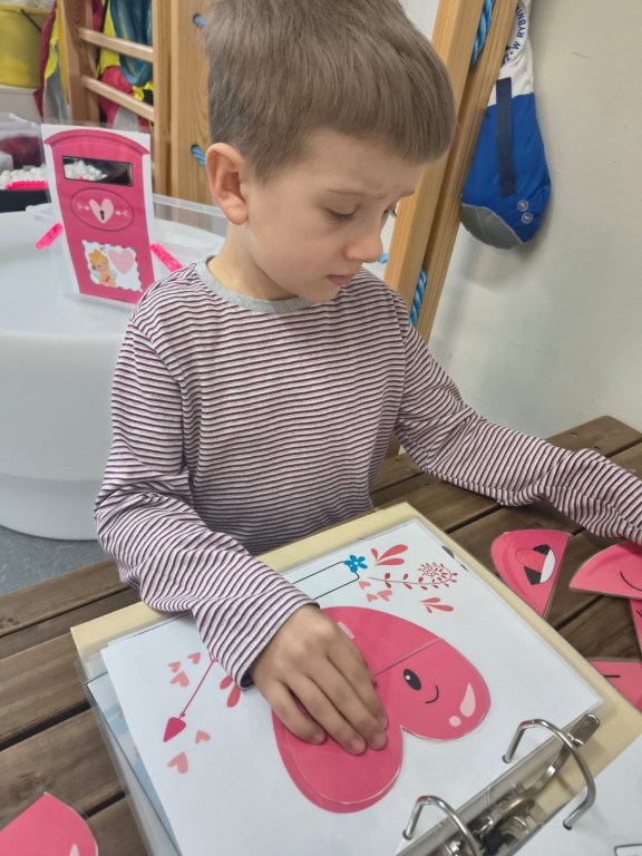Podczas zajęć dodatkowych rozmawialiśmy o miłości, przyjaźni i emocjach, ucząc się, jak okazywać sobie życzliwość. Na sali SI dzieci pokonywały ścieżkę sensoryczną i wykonywały ćwiczenia wspierające koordynację oraz równowagę. Były także zabawy logopedyczne oraz ćwiczenia motoryki małej.