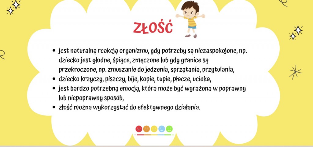 Emocje przedszkolaków są bardzo ważne, poniewać pomagają im zrozumieć siebie i świat wokół. Radość, złość, smutek czy strach- wszystkie uczucia są potrzebne i naturalne. Dzieci dopiero uczą się je rozpoznawać i wyrażać, dlatego tak ważne jest wsparcie dorosłych, rozmowa oraz akceptacja ich przeżyć.